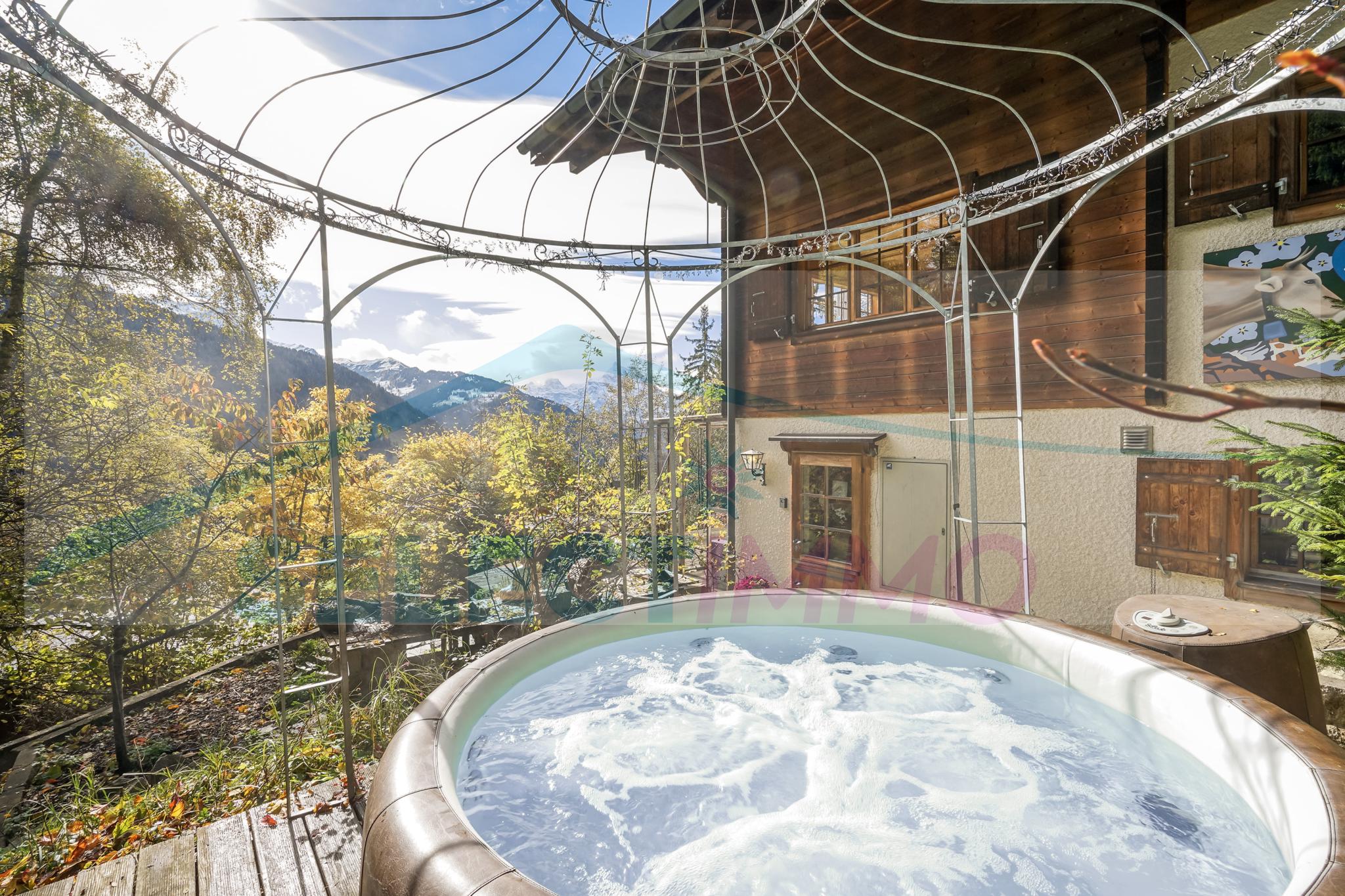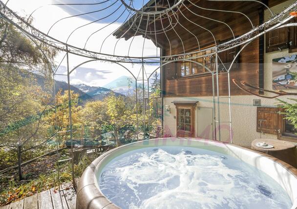 Un jacuzzi tient une belle place à l'abri des regards indiscrets et il bénéficie d'un panorama extraordinaire.