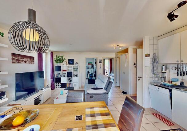 L’immeuble se compose de deux appartement de 3,5 pièces d’environ 60 m2 chacun, l'un avec balcon et l'autre au bénéfice d'un grand jardin de plein pied.
